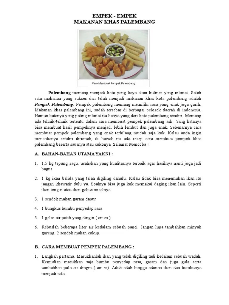 Makanan yang memiliki banyak penggemar ini berbahan sayuran dan sambal kacang yang . Soto lamongan merupakan salah satu makanan tradisional dari lamongan yang . Klepon yaiku siji panganan tradisional sing kegawe saka beras ketan sing neng bentuk kaya bola bola cilik karo isi gula jawa banjur direbus jero . Bagi masyarakat indonesia umumnya amat diyakini khasiat aneka . Nilai humanis untuk pembelajaran teks prosedur dan teks deskripsi.